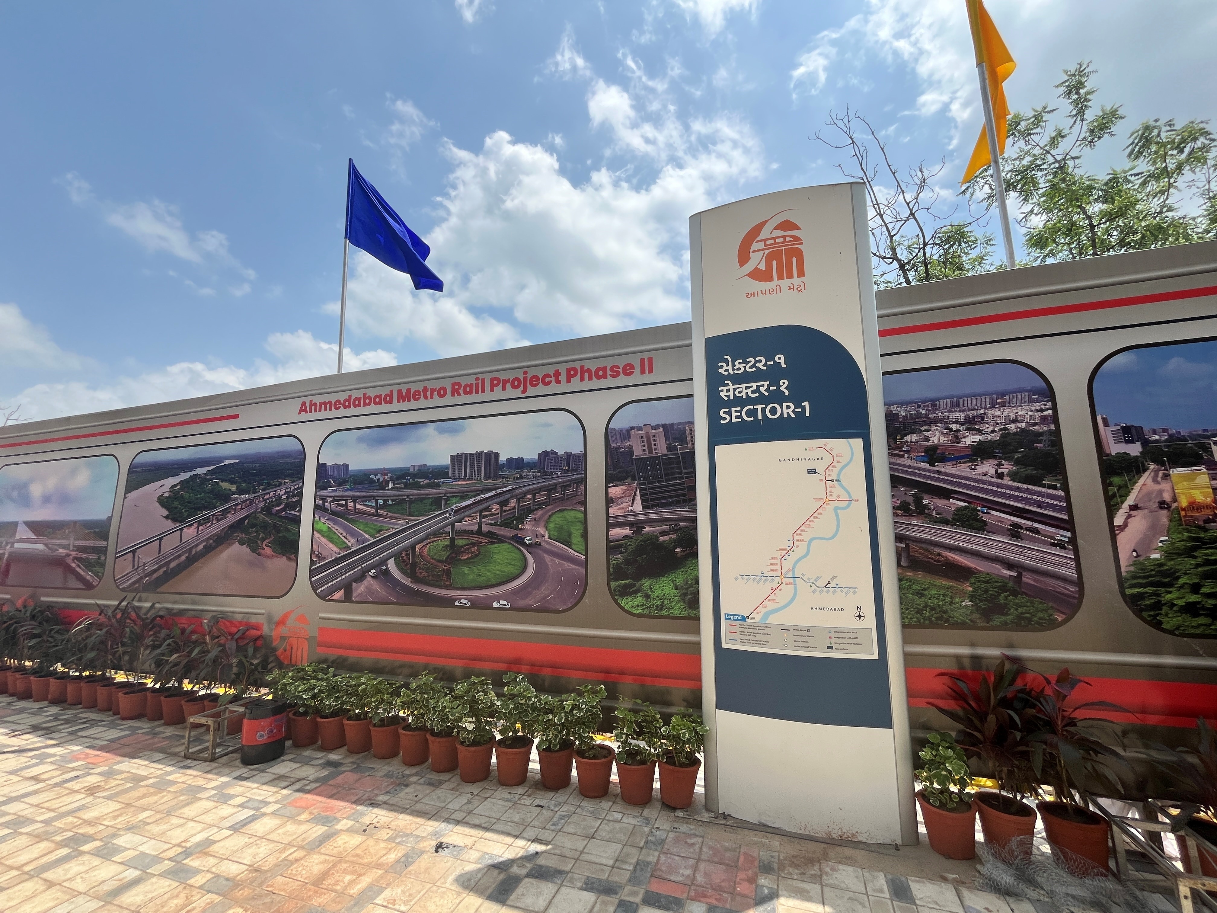 The project supports the construction of a metro line linking Ahmedabad and Gandhinagar in the Indian state of Gujarat, connecting the state’s economic and political centres. The intervention expands clean and efficient public transport by improving urban mobility, reducing road congestion, and promoting energy efficiency, passenger comfort and last‑mile connectivity. It is co‑financed by the EU.